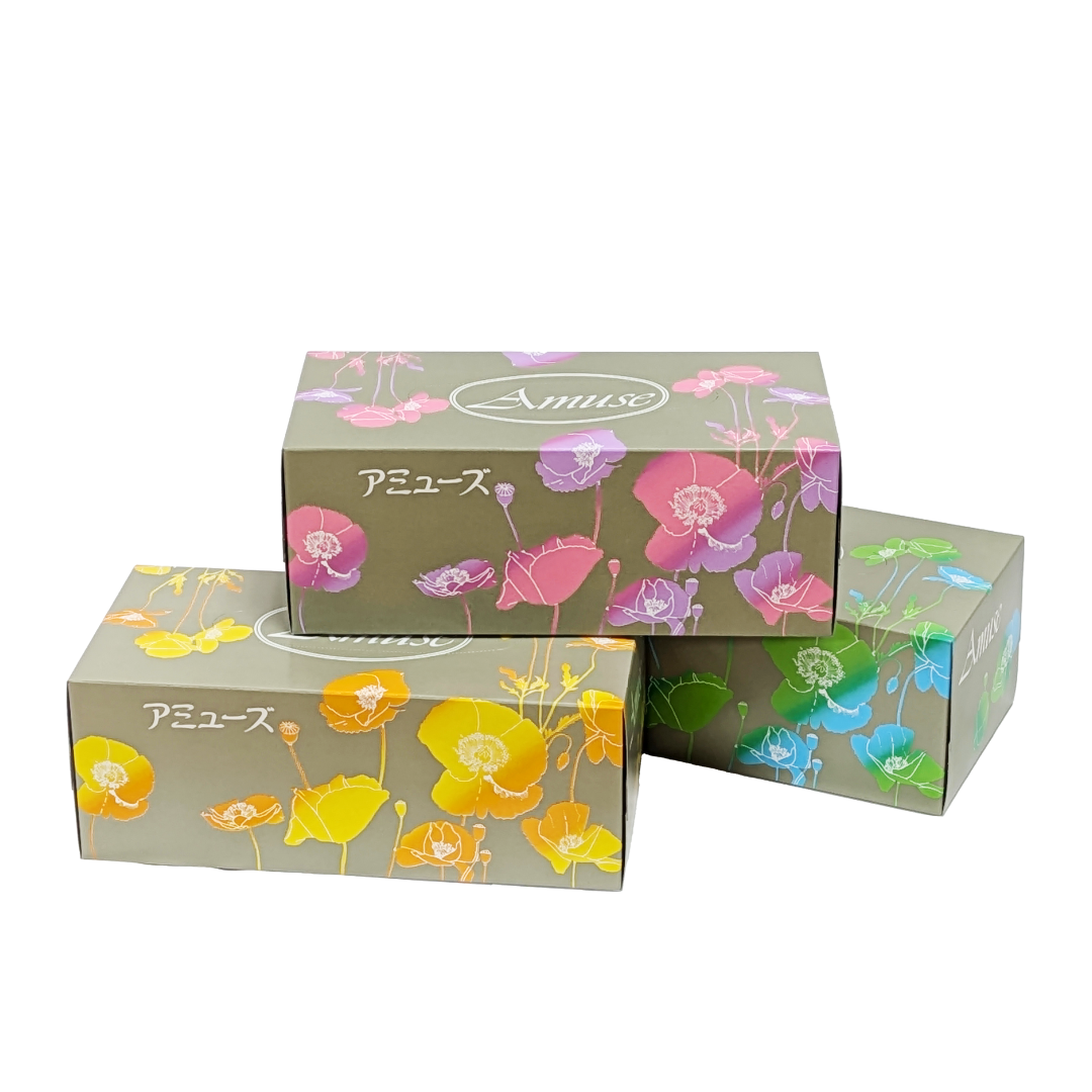 【アミューズ:ボックスティッシュ】 外箱3色×5個入り