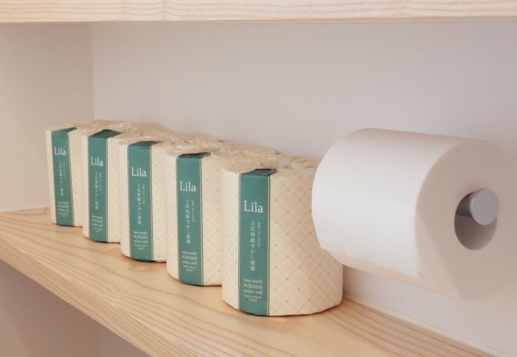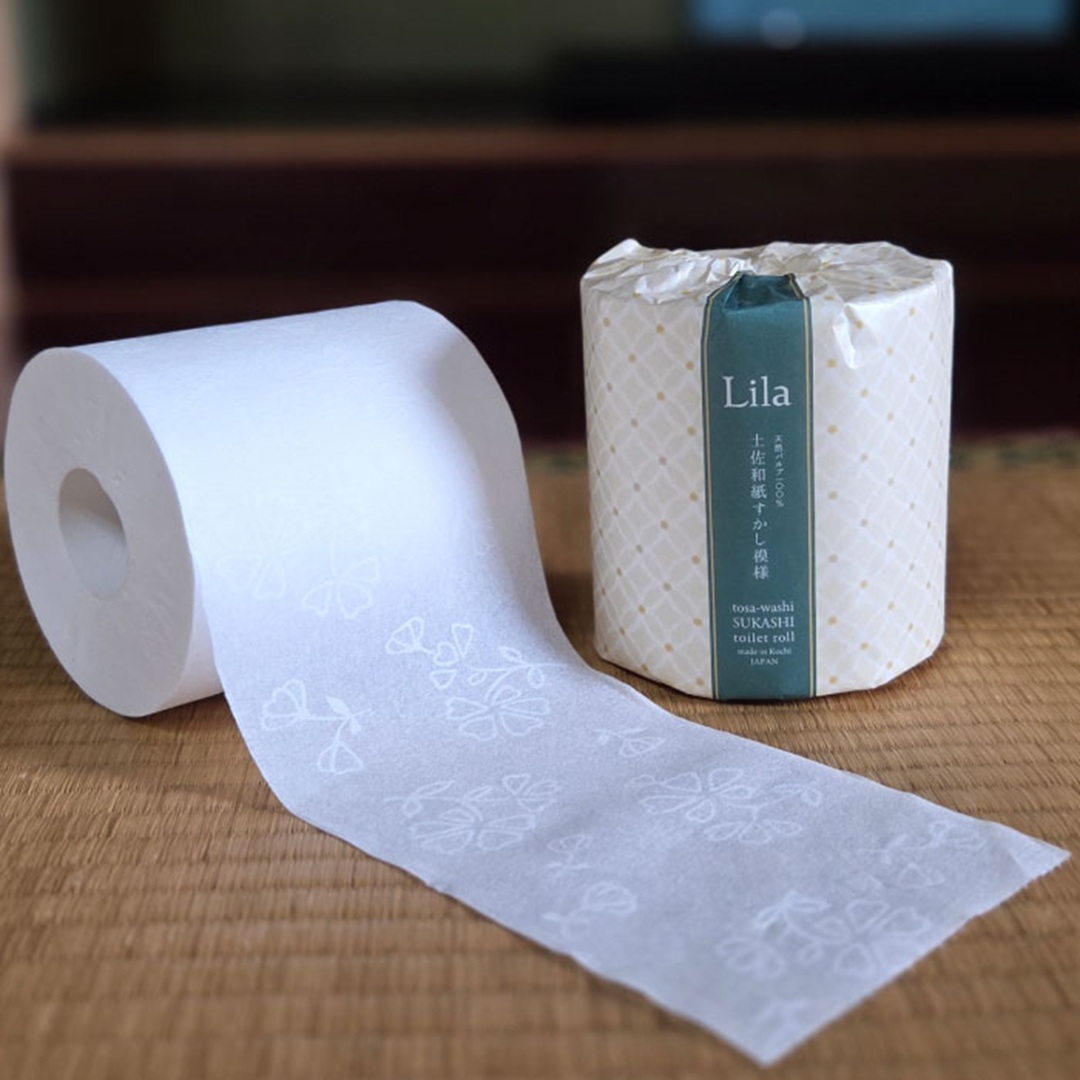 - : 土佐和紙伝統工法を用いた、透かし模様のトイレットロールです。(柄はプリントではありません。)