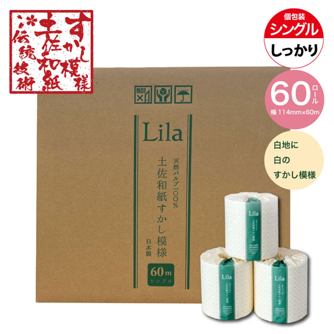 【リラ:トイレットペーパーシングル】60ロール入り_透かし模様入りのトイレットペーパー