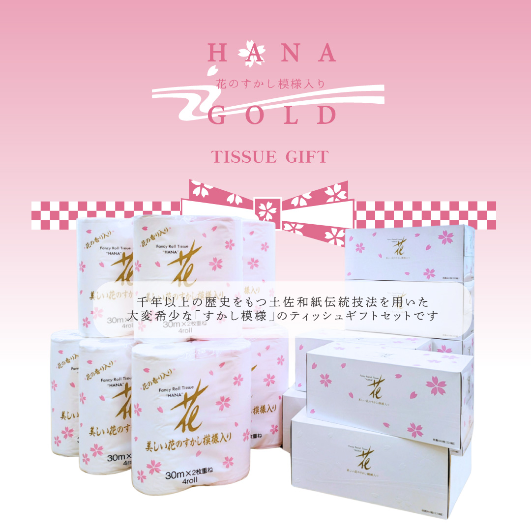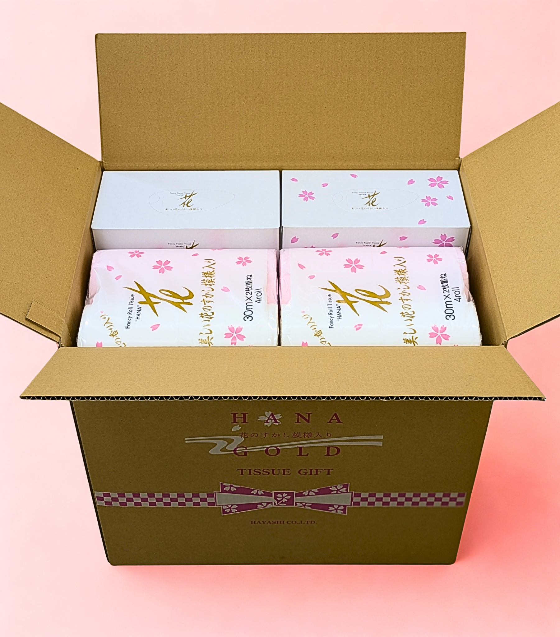 【花ゴールドティッシュギフト さくら】トイレットペーパー4ロール×8パック・ボックスティッシュ8箱